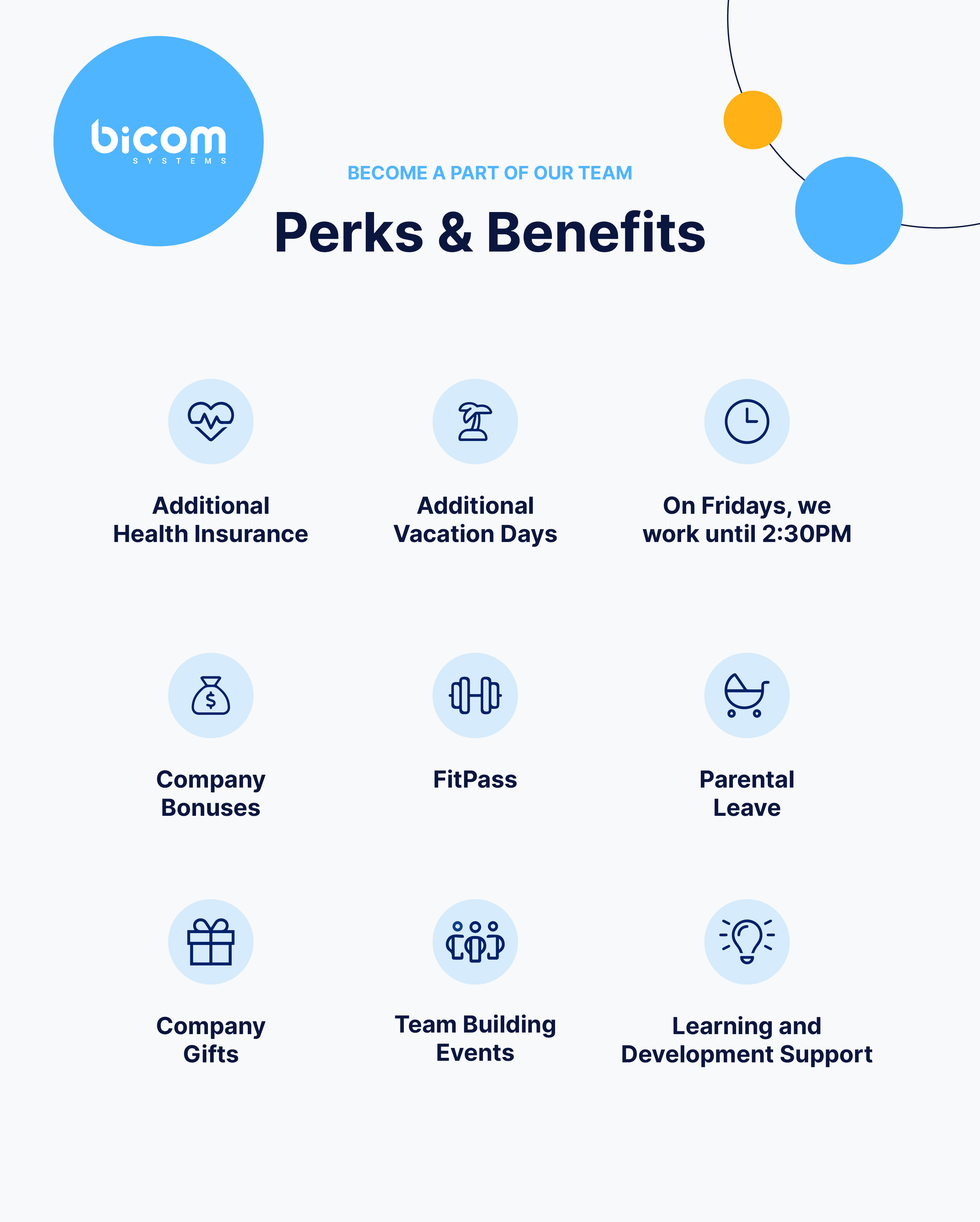 At Bicom Systems, we believe results come from teams that take ownership, act with trust, and are accountable for their work. We invest in professional growth, encourage thoughtful decision-making, and support a healthy work-life balance.